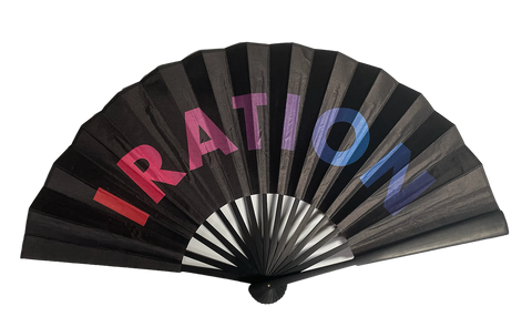 Iration double sided collapsible fan Silk screen printed 13" tall